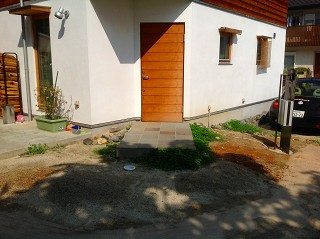 門柱はお客様がご自身でデザイン・制作され、また駐車場や歩道もご自身で計画され、施工済みです。