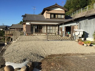 今回は、昔からある庭の構造物(コンクリート池など)や樹木を整理して、庭をフェンスと伸縮門扉で囲うというご依頼です。